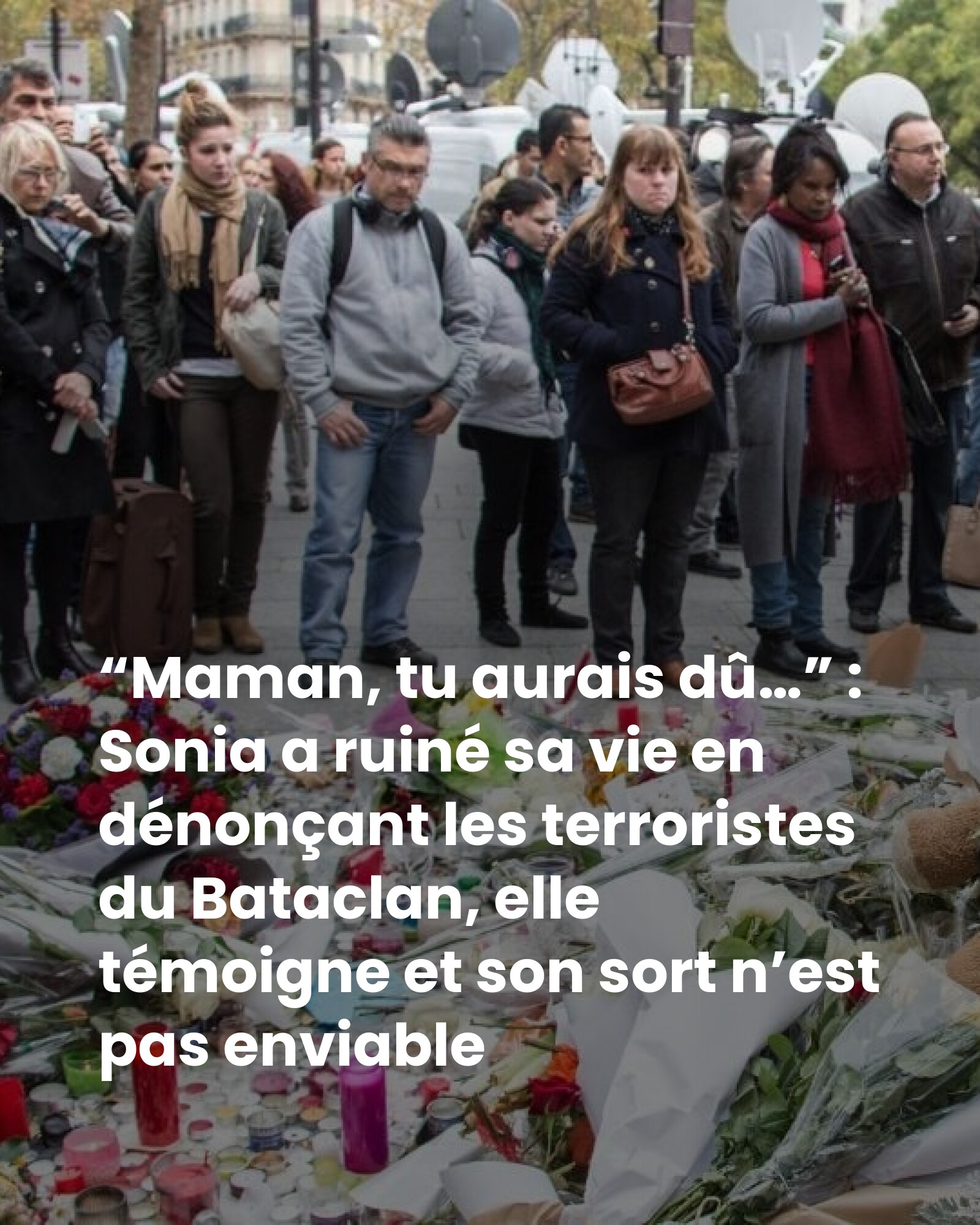 En novembre 2015, Sonia héberge une connaissance, Hasna, sans savoir qu’elle est liée aux terroristes en fuite. Lorsqu’elle comprend la gravité de la situation et découvre la présence d’Abdelhamid Abaaoud, elle prend son téléphone, appelle les autorités, et accepte de les rencontrer malgré le danger.