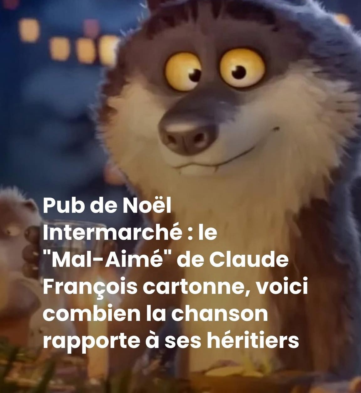 À l’heure actuelle d’ailleurs, la publicité d’Intermarché a déjà dépassé les 20 millions de vues. Le Mal Aimé de Claude François, de son côté, connaît un véritable rebond d’écoute. La chanson ponctue, la fois avec humour et émotion, les aventures de ce loup devenu si célèbre avec la pub d’Intermarché et comptabilise même, d’après les informations de BFMTV, “une augmentation de 217% des streams dans le monde depuis le 3 décembre.” Un succès qui profite, aussi, aux héritiers de Claude François.